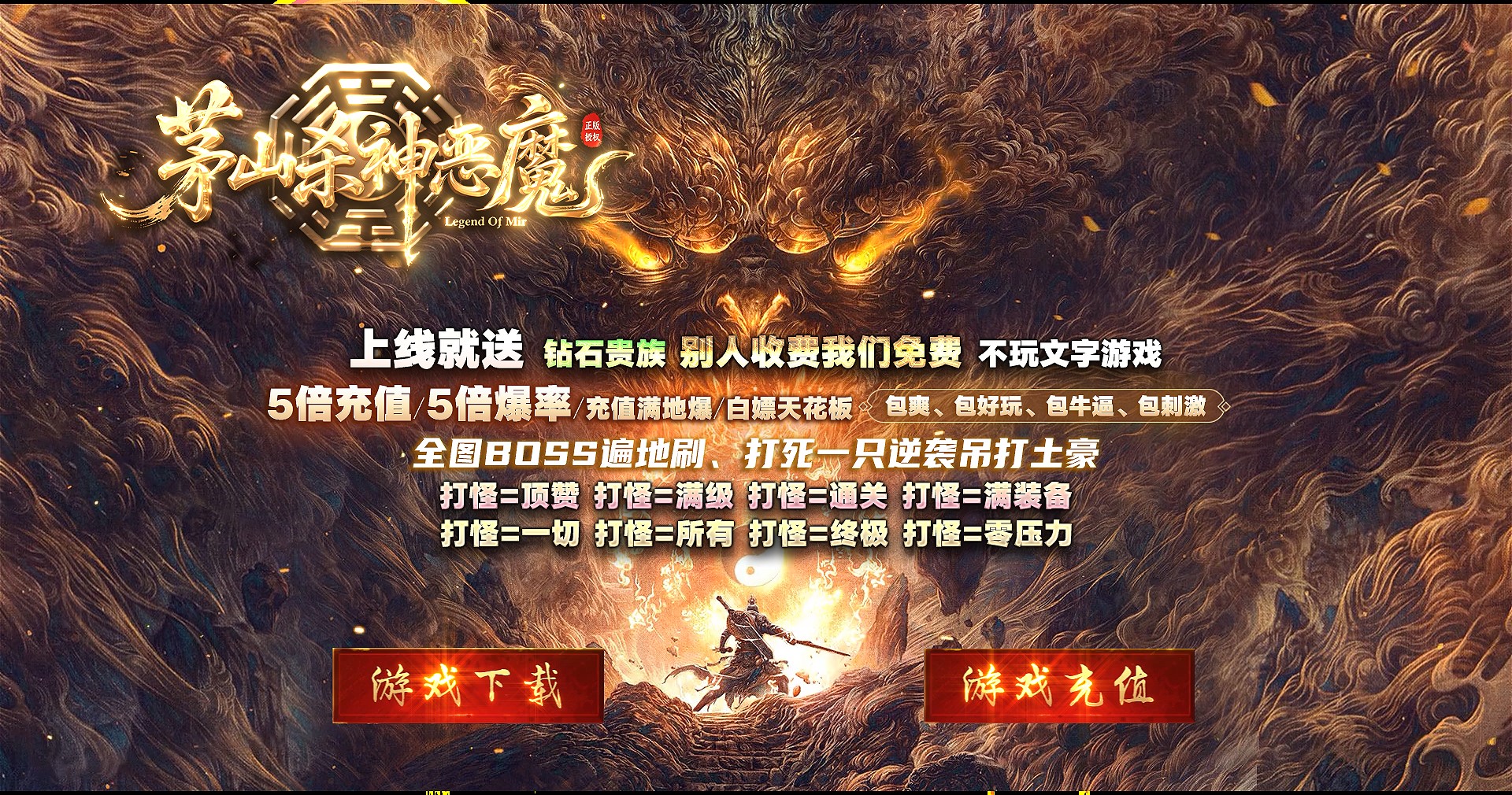 独家纯玩服 杀BOSS吃肉换米 杀小怪换充值